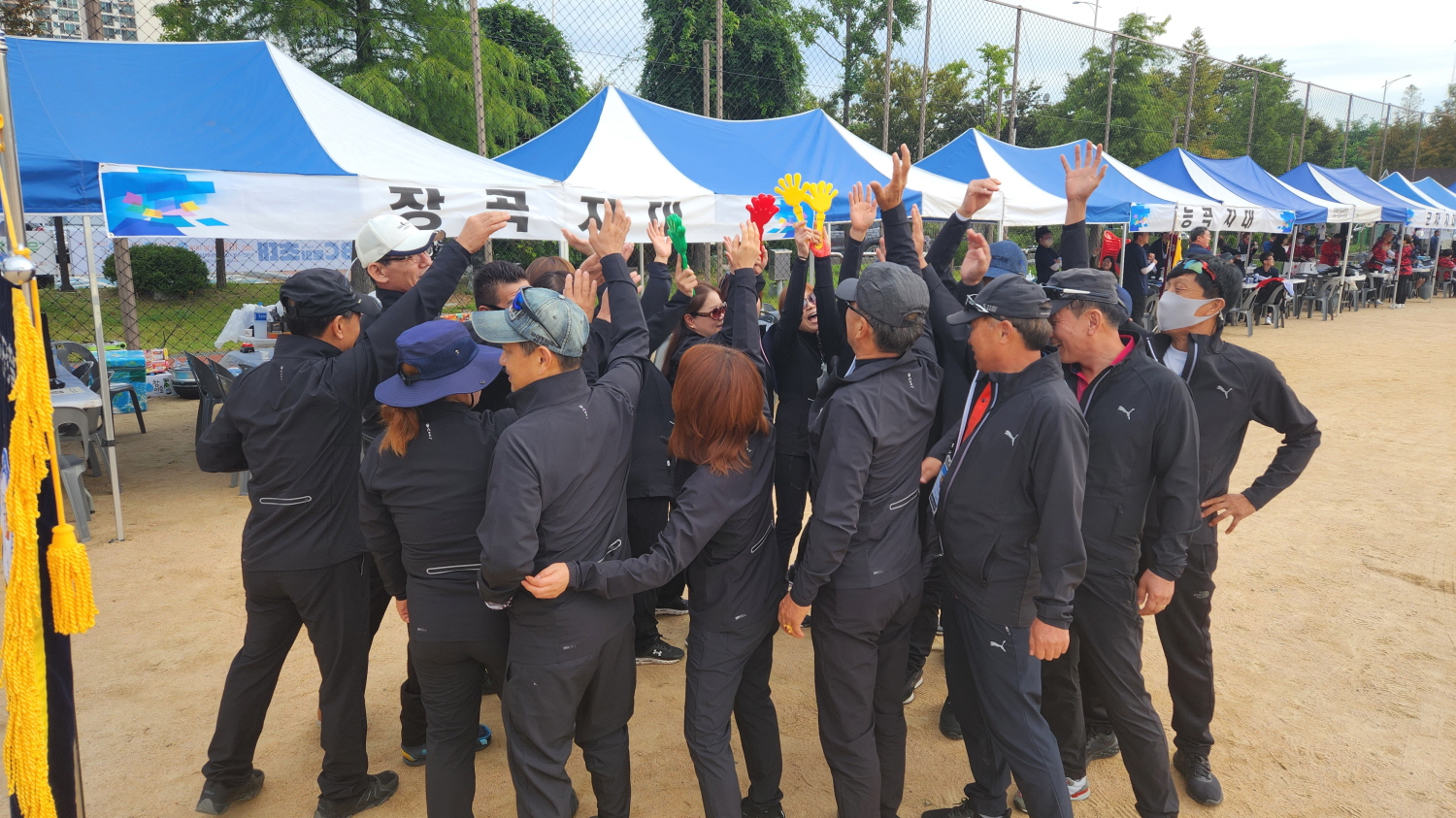 각 지대의 화합과 단합을 위해 한마음 한뜻으로 체육대회를 열었다.