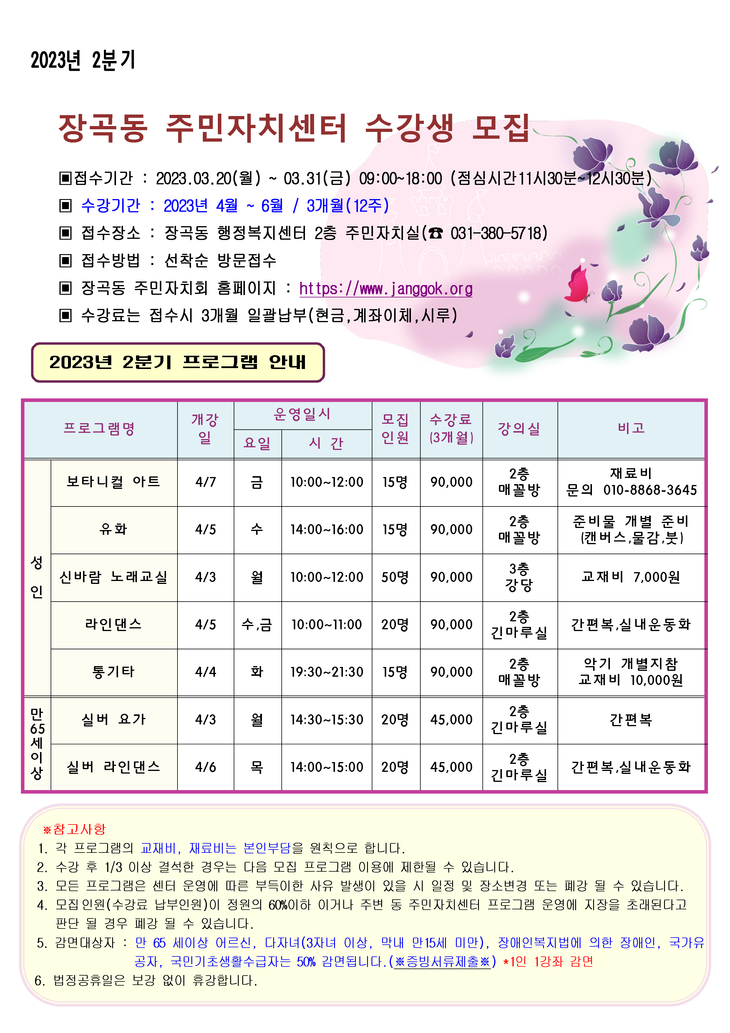 장곡동 교육프로그램을 안내해드립니다.