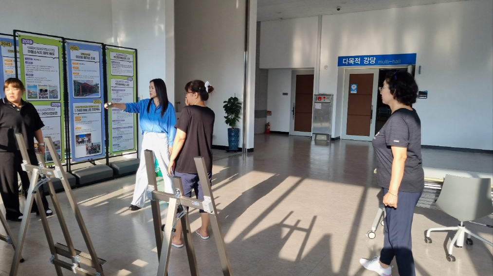 3층강당 자리배치와 바닥청소