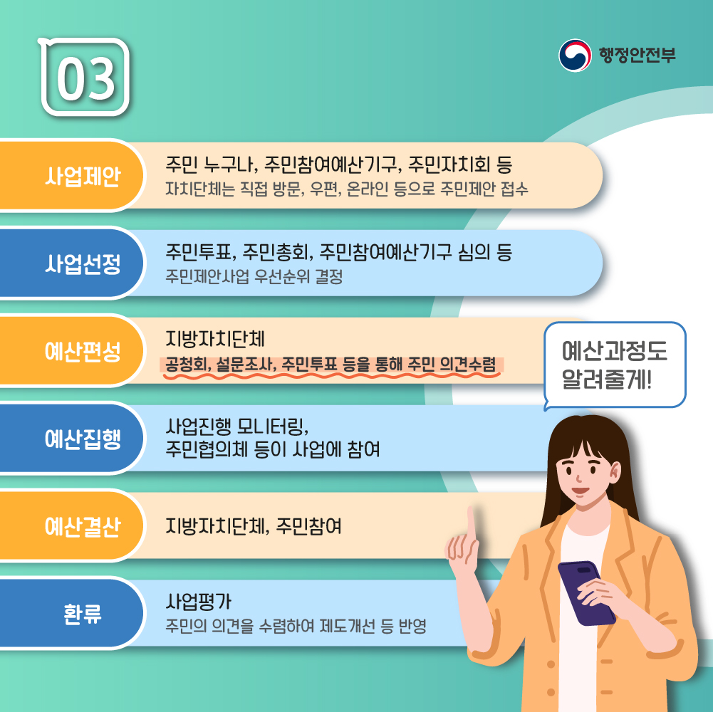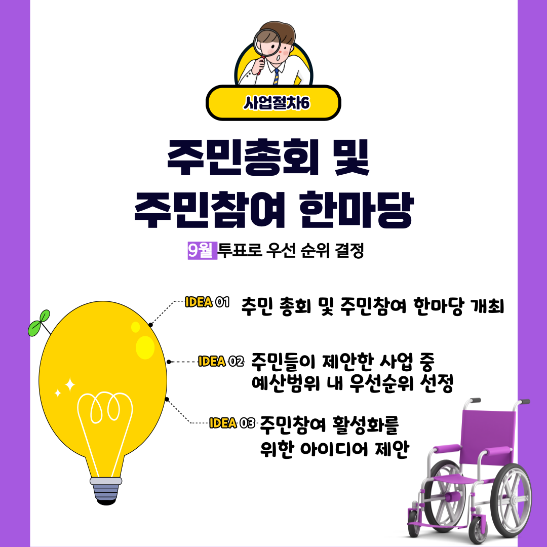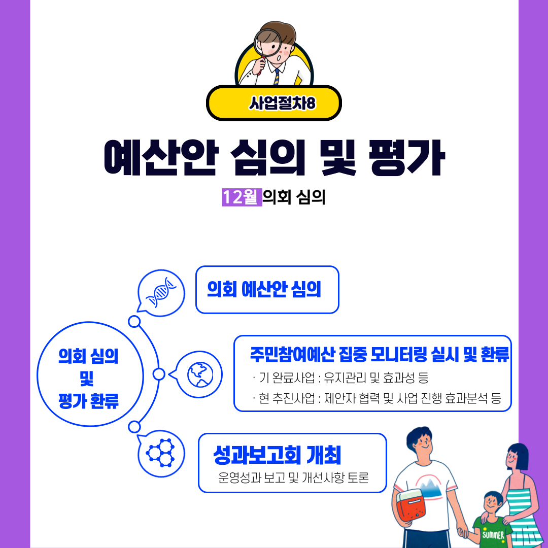 - 내용 : 주민참여예산제 운영결과 보고 및 주민참여예산제 운영 보완대책 마련 및 차년도 계획 반영